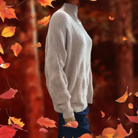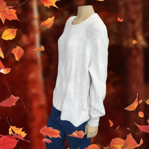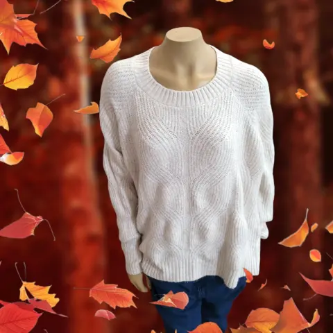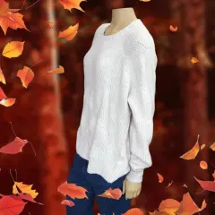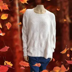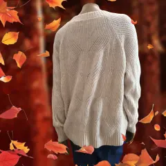 Sueter de Acrilico Market Sproud, talla L, color beige, cuello redondo, manga larga, detalles de punto 3D, muy comodo, hecho de acrilico,48cm de hombro a hombro, poliester y espandex, mide 48 cm de hombro a hombro, 60cm de axila a axila, 50cm de cintura, 57cm de manga con 60cm de largo del hombro hacia abajo en buen estado cosmetico.