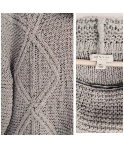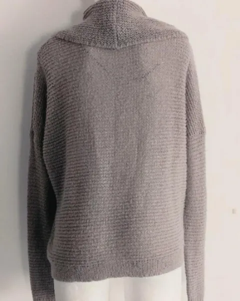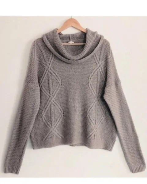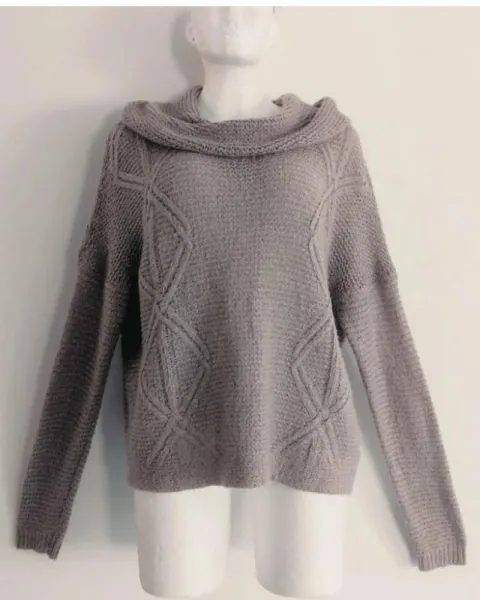 Suéter de cuello holgado con rombos. Lindo Suéter de cuello holgado con rombos, tejido de hilo café grisáceo con hilos de discretos brillos color plata, talla XL posible para grande también.