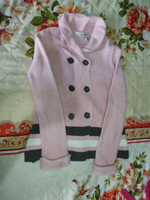 Muy bonito calientito,talla 5 de niña con tiras de color café y blanco 57% de algodón