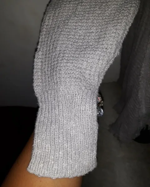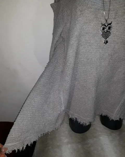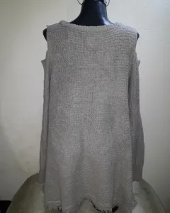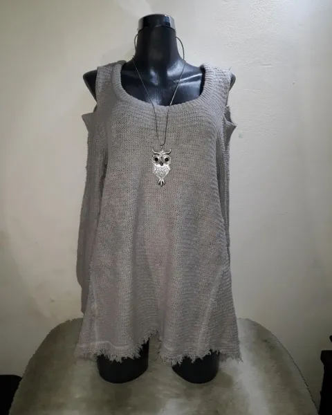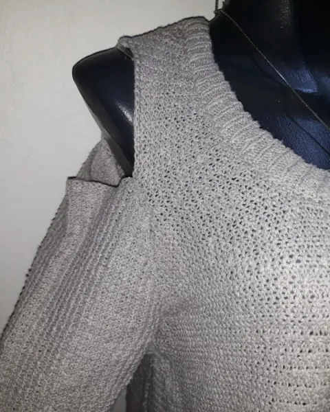 Sueter de punto hombro frío, color gris claro talla M da a talla gde.No tiene ningun detalle.