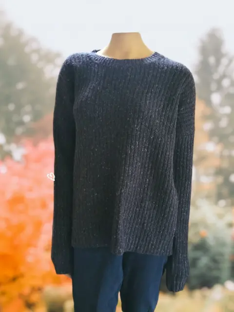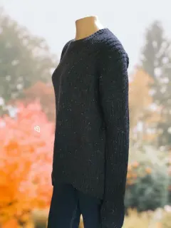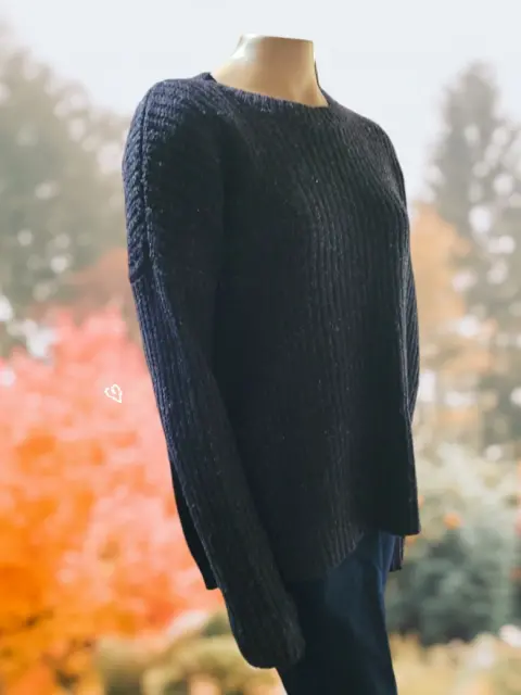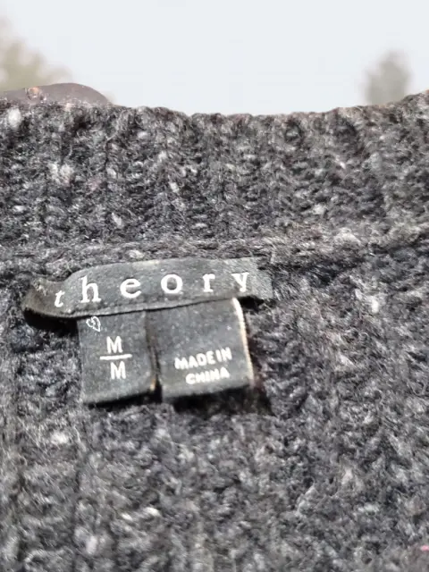 Sueter de Invierno Theory, talla mediana, color negro con acentos grises, cuello redondo, manga larga, puños y cintura semielastica, hecho de punto acrílico, mide 56cm de hombro a hombro, 58 de axila a axila, g54cm de cintura, 63cm de manga con 67cm de largo del hombro hacia abajo en buen estado cosmetico