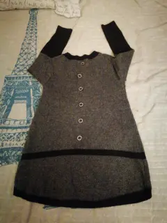 Suéter de Lana. Suéter gris de lana con botones en la parte de atrás y bolsitas delanteras, puesto una vez