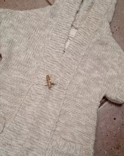 Suéter de lana (no pica) super suavecito. Precioso suéter de lana muy suavecito (no pica), boton de madera, bolsillosenfrente, capucha, manga corta, la marca habla por si sola