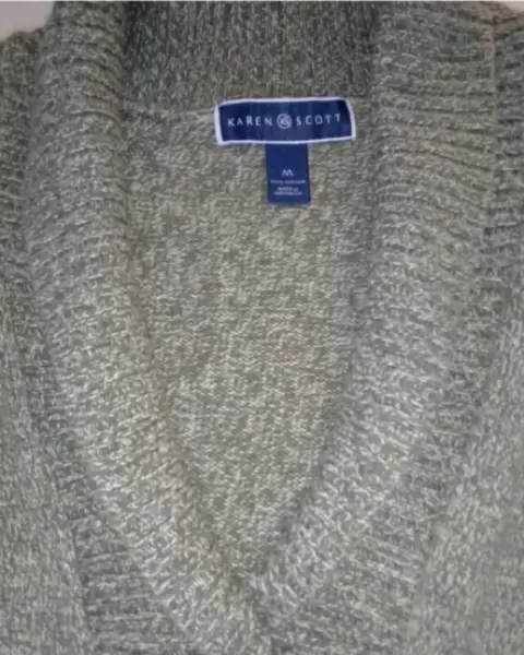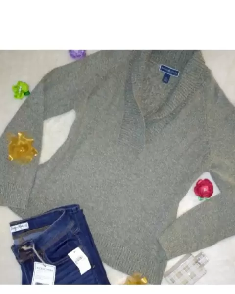 Muy Lindo! El tono es verde seco, talla M, viene un poco amplio y puede quedar a L. Calientito y lo mejor es 100% algodón, en buenas condiciones.De axila a axila: 53 cmLargo: 60 cm