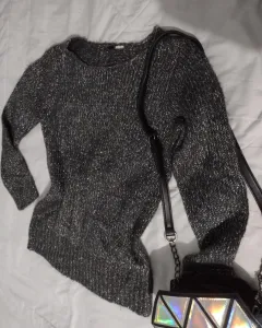 Suéter de punto con destellos plateados, tela super sueve se ve hermoso y super calientito para estas fechas de frio.