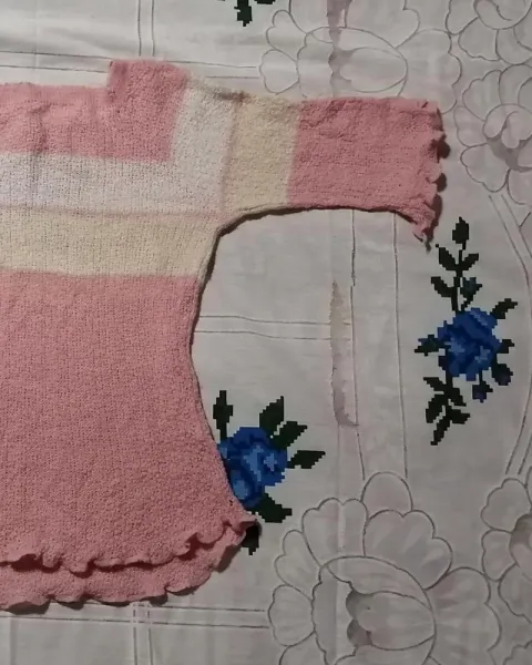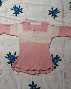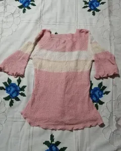 Suéter de punto con manga 3/4, excelente para días templados. Su único detalle es en la unión del cuello, pero es prácticamente imperceptible, si le pone atención se puede ver en la última foto.