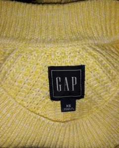 Hermoso sueter amarillo marca gap talla xs pero viene amplio, queda a talla mediana.Lindo color sin ningun detalle.