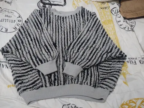 Suéter de tejido color gris negro, mangas anchas , talla XL, está hermoso