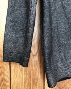 Suéter en V Zaraknit. Este suéter es de la colección Zaraknit de Zara, con tinte plateado es una prenda muy original.