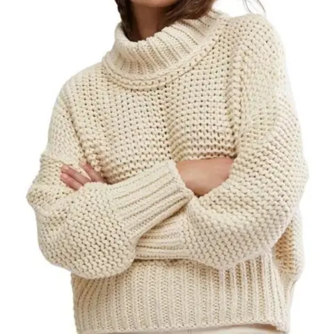 Suéter FREE PEOPLE, diseño holgado, estilo relajado, hilo y costura gruesa, cuello cerrado, hombros caídos.Talla XS puede quedar una SMedidas tomadas por un solo lado:*Hombros 52 cm*Largo 50 cm