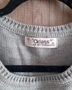 Suéter gris. Hermoso sueter gris con letras.Pequeño detalle de costura en la foto 3 en el cuello, no afecta su uso.Talla L marca CklassFoto 4 sugerencia de uso