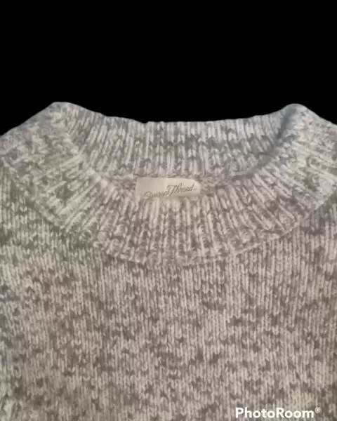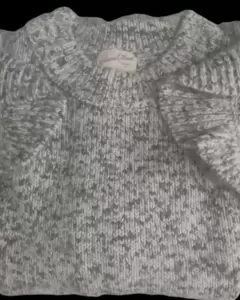 Suéter gris. Suéter NUEVO, de punto, con olanes, color gris con blanco. Es talla S pero puede quedar a M, porque es un poco grande.