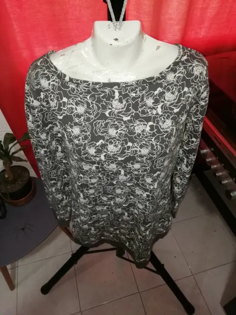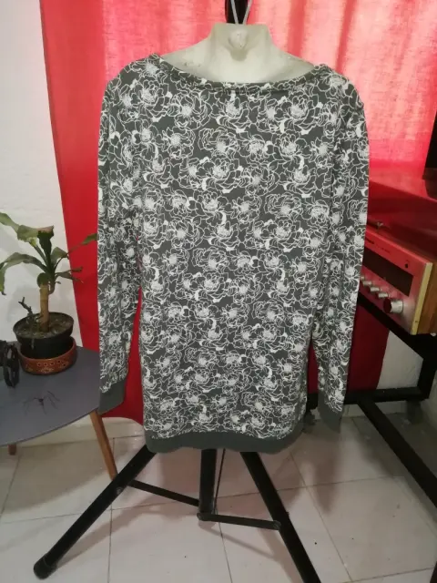 Floreado en blanco, este suéter largo gris es ideal para la tarde casual 🌑👁️⛰️🗿 imperdible en tu Guardarropa 💅😻✨😌