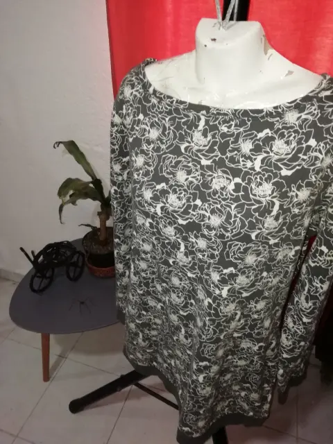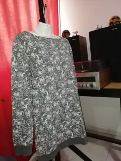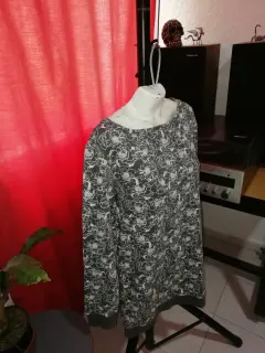 Suéter Gris Largo. Floreado en blanco, este suéter largo gris es ideal para la tarde casual 🌑👁️⛰️🗿 imperdible en tu Guardarropa 💅😻✨😌