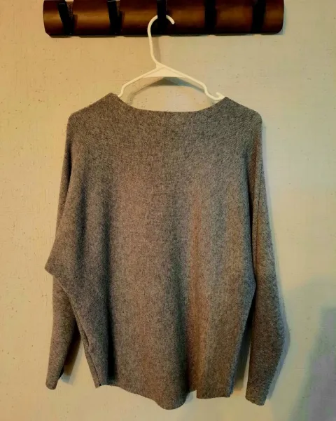 Suetér gris manga murciélago. Sueter mamga murciélago talla XL, usado en 3 ocasiones, aun siendo talla grande le queda perfecto a una talla M o L. Cuenta con un largo de 67cm y detalles de pedrería en el frenge