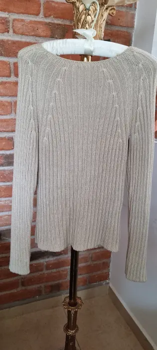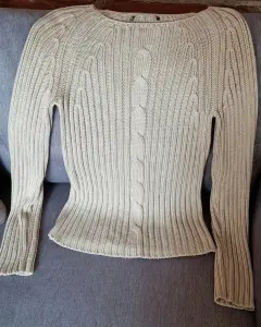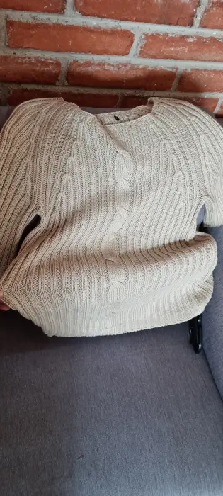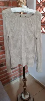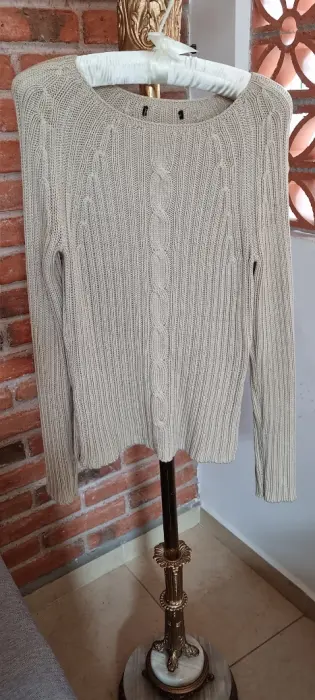 Bonito suéter grueso, es de buena marca pero no la recuerdo, le corté la etiqueta porque picaba☺️ estira bastante queda a CH M y L