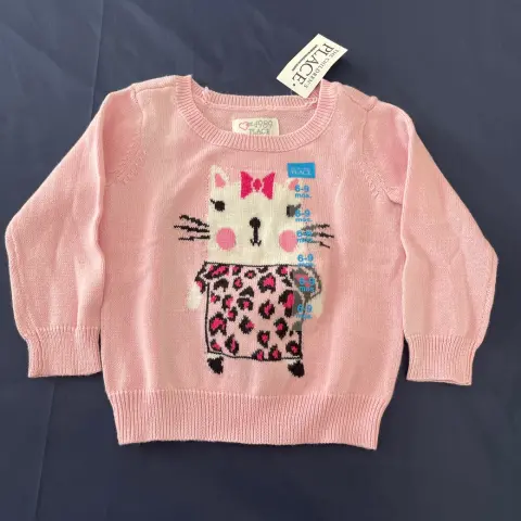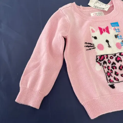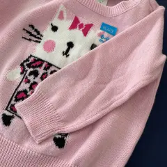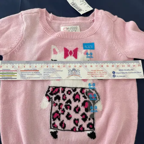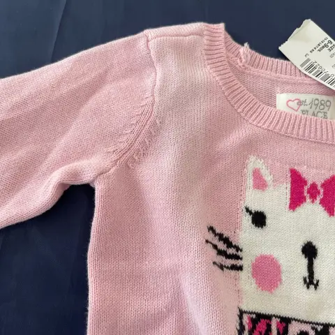 Suéter hermoso color rosa con estampado de conejita es talla de 6/9 meses tiene unos detalles de decoloración que se aprecian en las fotografías la tela súper suave realmente hermoso 🤩
