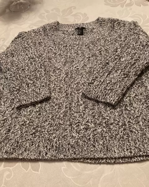 SUÉTER H&M T/M. Hermoso y amplio suéter de punto, gris claro con hilos negros, sin detalles.