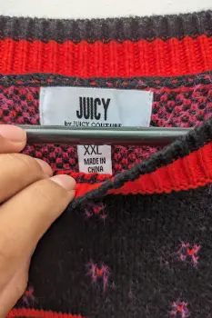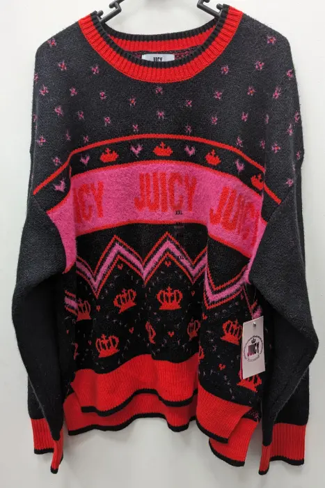 El suéter Juicy Couture en negro con detalles rojos es una verdadera declaración de estilo. La inclusión de la icónica palabra 'Juicy' en el diseño le da un toque distintivo y audaz. Su manga larga y cuello redondo lo hacen perfecto para mantenerse abrigado y cómodo en cualquier ocasión.