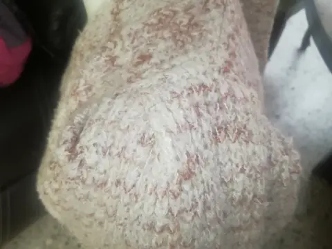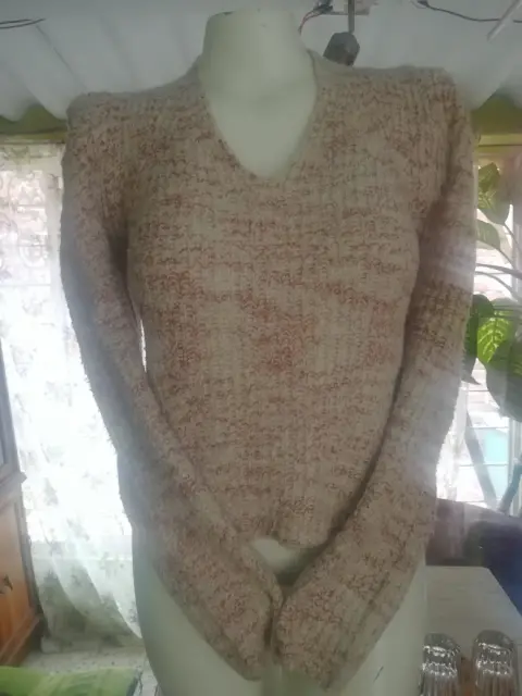 Hermoso sueter color beige con Rosita tejido talla L los hombros son de globo muy bonito