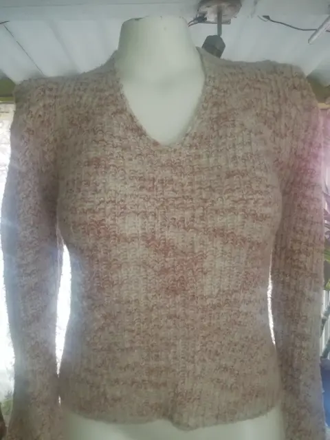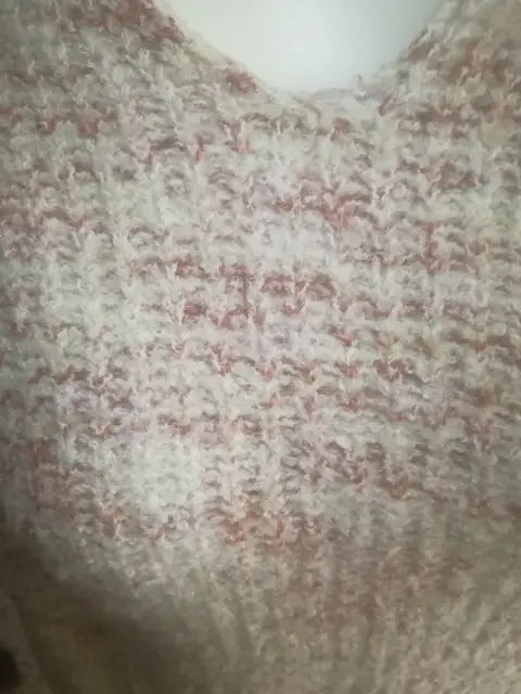 Sueter L mangas globo. Hermoso sueter color beige con Rosita tejido talla L los hombros son de globo muy bonito