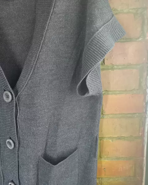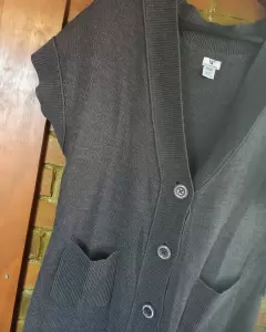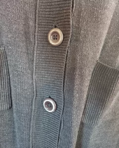 Sueter largo de punt talla mediana ideal para mallones, tono gris con en muy buen estado, solo los botones están un poco desgastados como se ve en foto