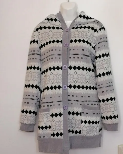 Bonito sueter largo con gorro, forro de peluche es muy calientito y suabe muy comodo estira un poquito ideal para outfit casual, altamentr cobinable por la covinacion de colores