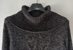 Suéter largo con cuello de tortuga. Suéter largo con cuello de tortuga en color negro con gris