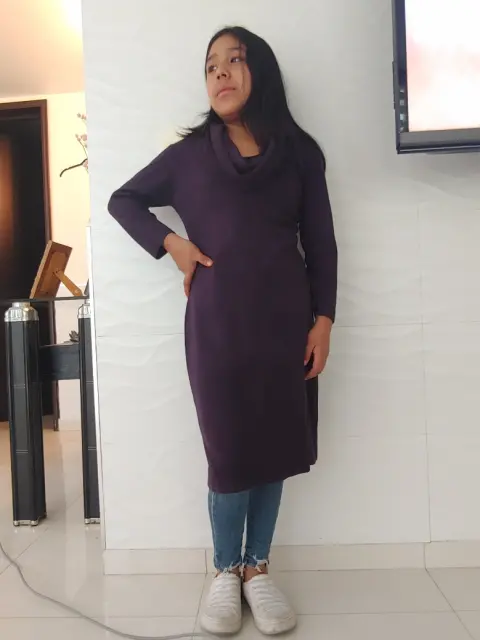Suéter largo manga 3/4Ancho axila a axila 40 cmLargo desde hombro 92 cm