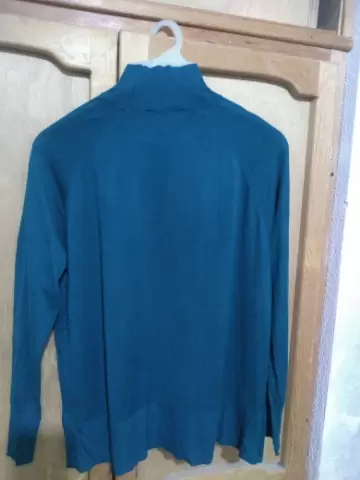 Suéter ligero color verde. Talla M , Mex talla 28. 50% acrílico y 50% Viscosa, tela estira y se ajusta muy bien.