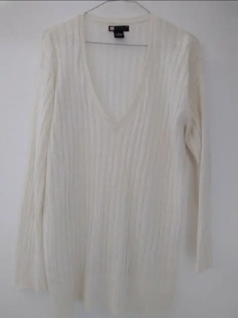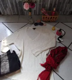 Suéter ligero cuello V acabado fino. Hermoso y versátil! Úsalo como blusa o suéter, muy bello y elegante, de acabado fino 100% lino, así lo especifica la etiqueta. Talla XL. Hecho en Taiwan.Nuevo sin etiqueta
