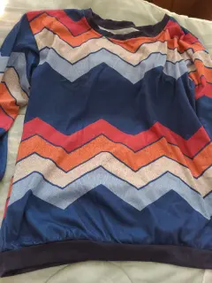 Suéter ligero unitalla. Suéter tipo sudadera delgada, largo a la cadera. El color es más intenso que en las fotos. Medidas hombros 58 cm, 112 cm pecho, 47 cm el largo de manga, largo total 57 cm. Puesto una vez