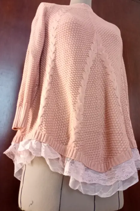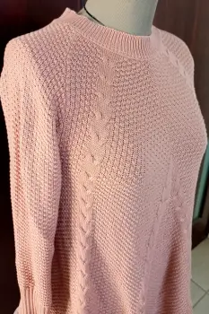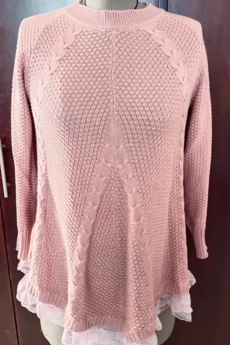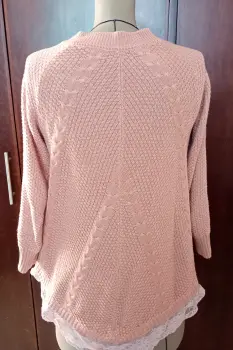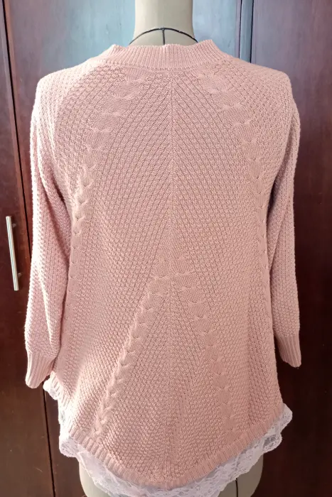 Lindo sueter liena A, llega por debajo de la cadera,a en exclente estado, tela resisistente al lavado, no se decolora y ni se deforma, con encaje y tu en la base del sueter.