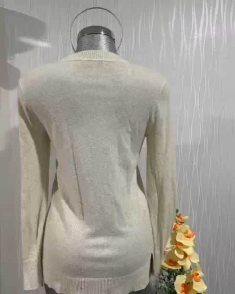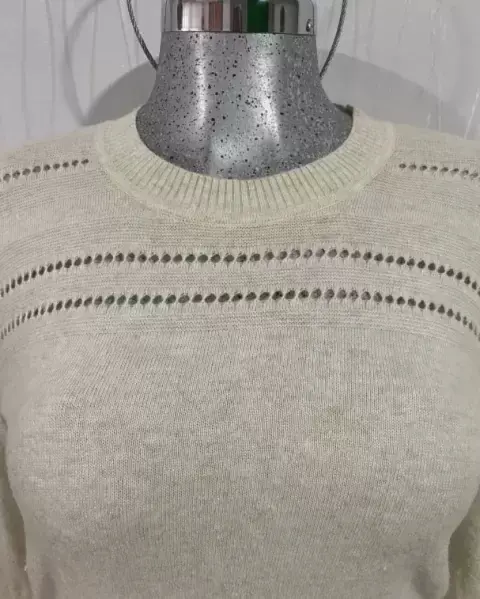 Suéter LOFT mediano beige. Suéter beige tejido mediano con diseño frontal