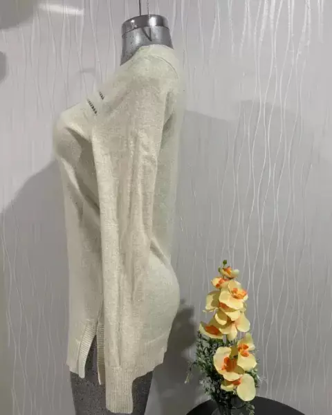Suéter beige tejido mediano con diseño frontal