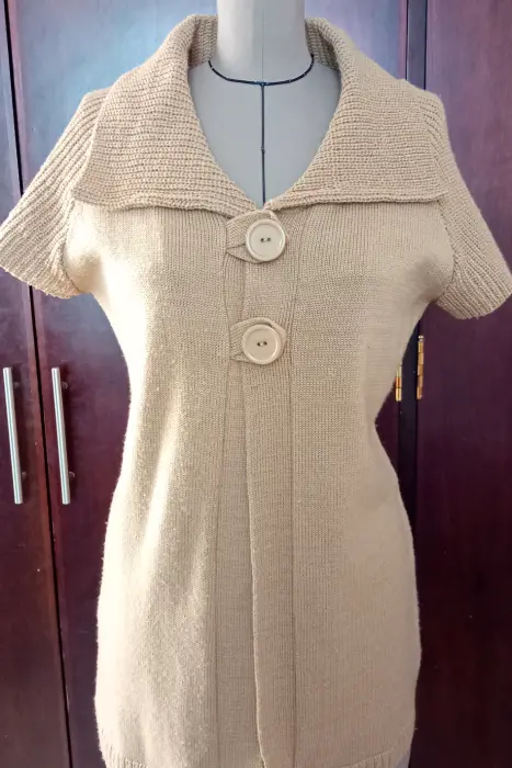 Sueter manga corta. Lindo sueter de punto color cafe. dos botones al frente, llega por debajo de la cadera, facil lavado.