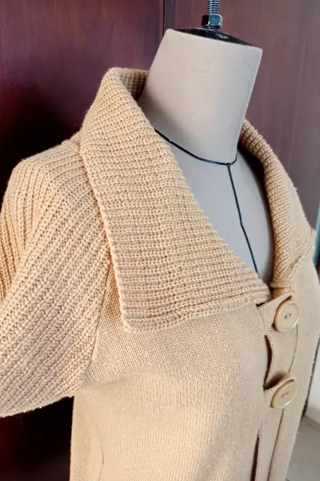 Lindo sueter de punto color cafe. dos botones al frente, llega por debajo de la cadera, facil lavado.
