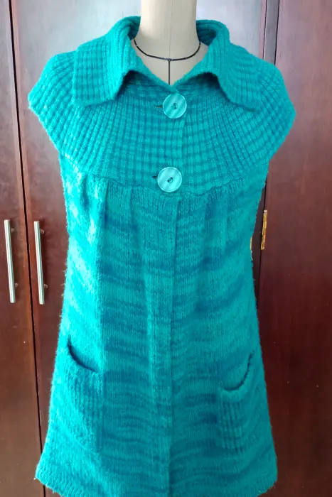 Lindo sueter manga corta, tambien puede ser usado durante el embarazo ya que cuenta con pinzas en el frente y la espalda, es un tejido de punto muy suave y calentito, llega por debajo de las caderas. Facil de lavar, sin detalles o jalones. en excelente estado.