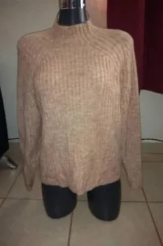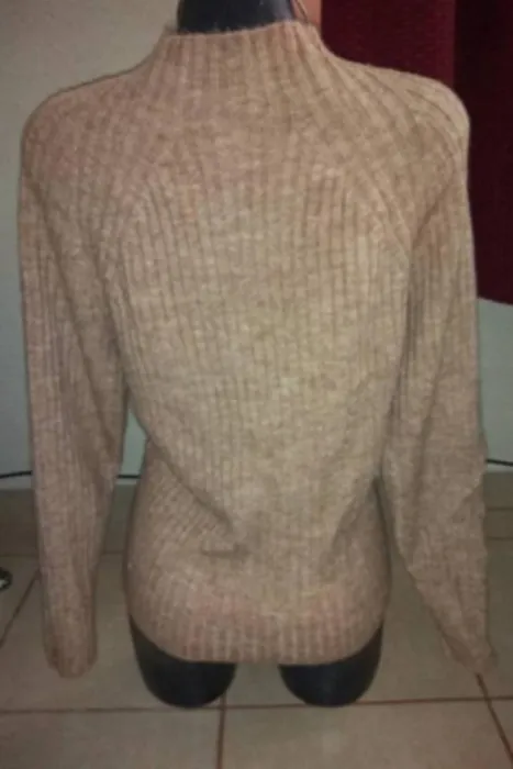 Sueter Beige, la marca es Mango. Esta muy bonito y calientito. Tiene un par de puestas esta casi nuevo. La talla es S pero sin problemas da a una M, viene amplio. Envío en cajas recicladas de amazon y para seguridad de ambas grabo al enviar.