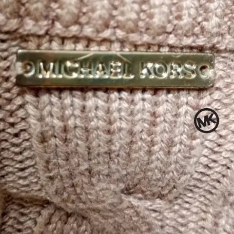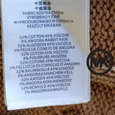 Suéter Michael Kors t S/M queda mejor a L manga 3/4 cuello en V, placa metálica distintiva de la marca en cuello, 45cm hombros 65cm axilas. 68cm largo. Material 52% algodón 45% viscoso 3% angora. Aberturas laterales