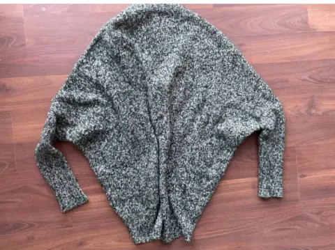 Suéter murciélago. ❄️ precioso suéter largo talla M tipo cárdigan , trae botón al frente para abrocharse es corto de enfrente y largo de atrás el color es verdoso con blanco . Muy lindo ‼️ hago combos y descuentos 🙂