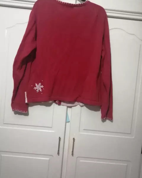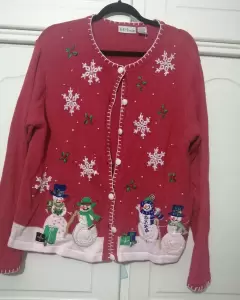 🎄🎄Suéter navideño de hilo⛄☃️. Lindo suéter navideño de hilo con figuras bordadas de muñecas de nieve⛄ copos bordados regalos🎁🎁 botones forrados de hilo, para Lindo para esta época navideña