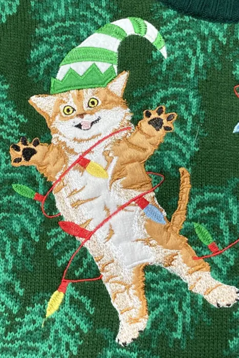 Sueter navideno gatos enrededados. Serás el alma de la fie de día fevo con estos diseños festivos y humorísticos seleccior por Blizzard Bay que son perfectos la temporada.Comodidad y ajuste: estos suéteres festivos de manga larga con cuello redondo para hombre están hechos de 100% acrílico exclusivo de decoración, suave y cómodo para un ajuste fácil mientras se usa