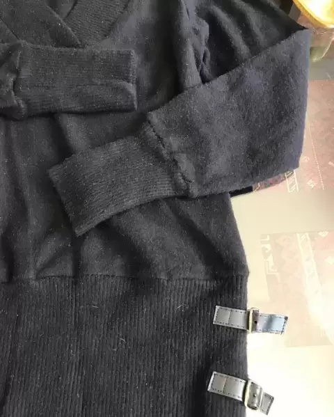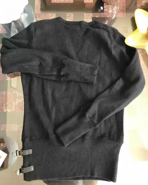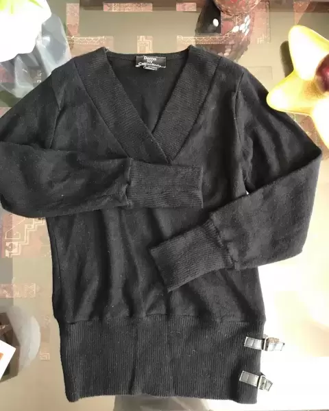 Bonito suƩter negro con evilla a un costado, manga larga, cuello V talla S