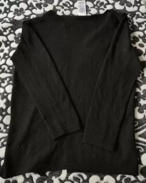 Suéter negro de punto. Talla mediana, pero queda mejor en talla chica. Se usó poco, no tiene ningún defecto.