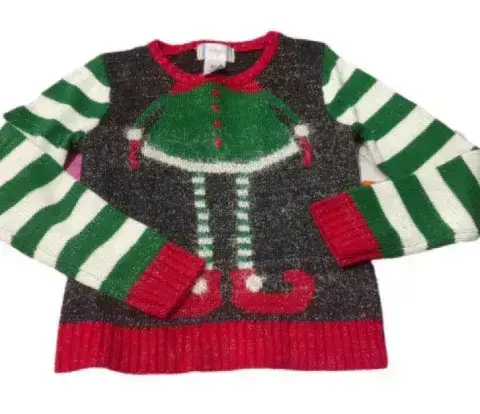 Sueter Niña. Suéter para niña estilo Uglysweater figura de duende ideal lar a diciembreTalla 10-12