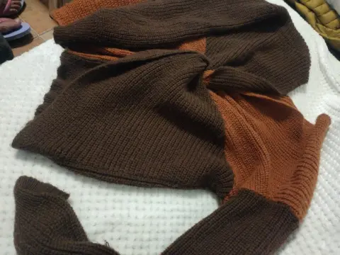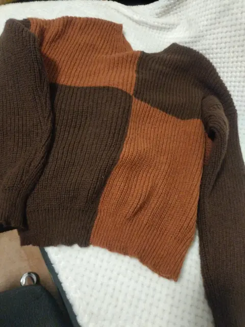 Suéter nudo. Suéter bicolor, de poliéster para curvilíneas, con detalle de nudo,