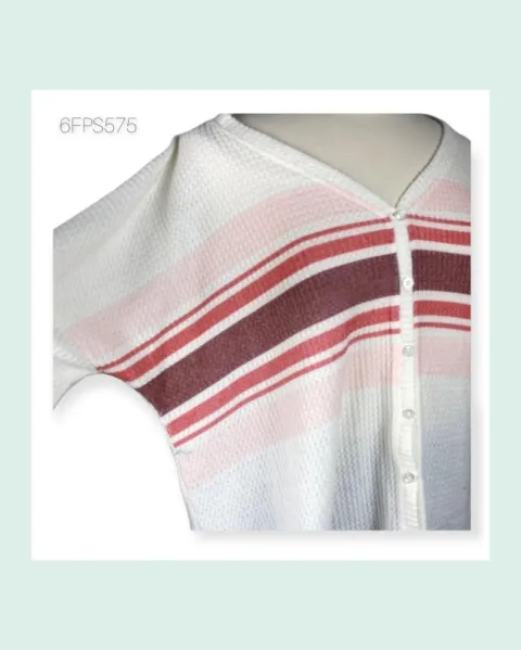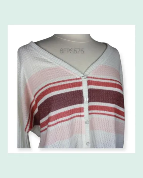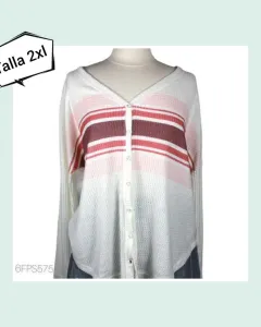 Suéter oversize a rayas. Bonito suéter con vivos rojizos, de botonsitos, ligerito.MedidasHombro a hombro 83cmAxila a axila 72.5Largo manga 40cmLargo 75.5cm