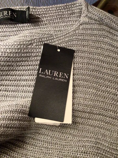 SUETER RALPH LAUREN XS. SUETER MARCA RALPH LAUREN, TALLA XS COLOR GRIS PLATINADO, MANGA LARGA CUELLO DE OJAL, CON ETIQUETA NO TIENE NINGÚN DETALLE, COMBINA CON FALDA PANTALON COLOR NEGRO, SUAVECITO