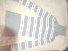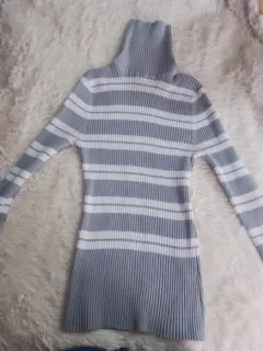Sueter rayado. Sin defectos, talla L, tela elásticaSueter gris con rayodo blancoHecho: 7% rayón y 93% poliéster